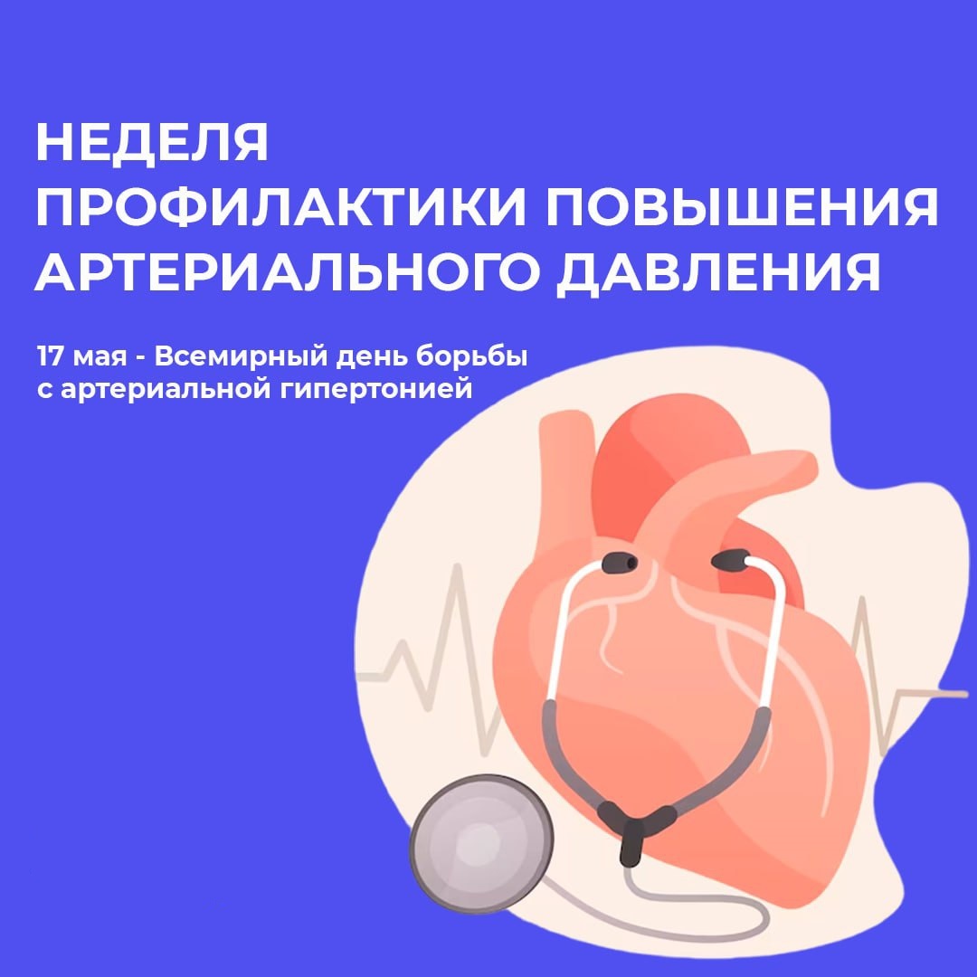 С 12 мая по 18 мая 2025 года Минздрав России проводит Неделю борьбы с артериальной гипертонией и приверженности назначенной врачом терапии (в честь Всемирного дня борьбы с артериальной гипертонией 17 мая)